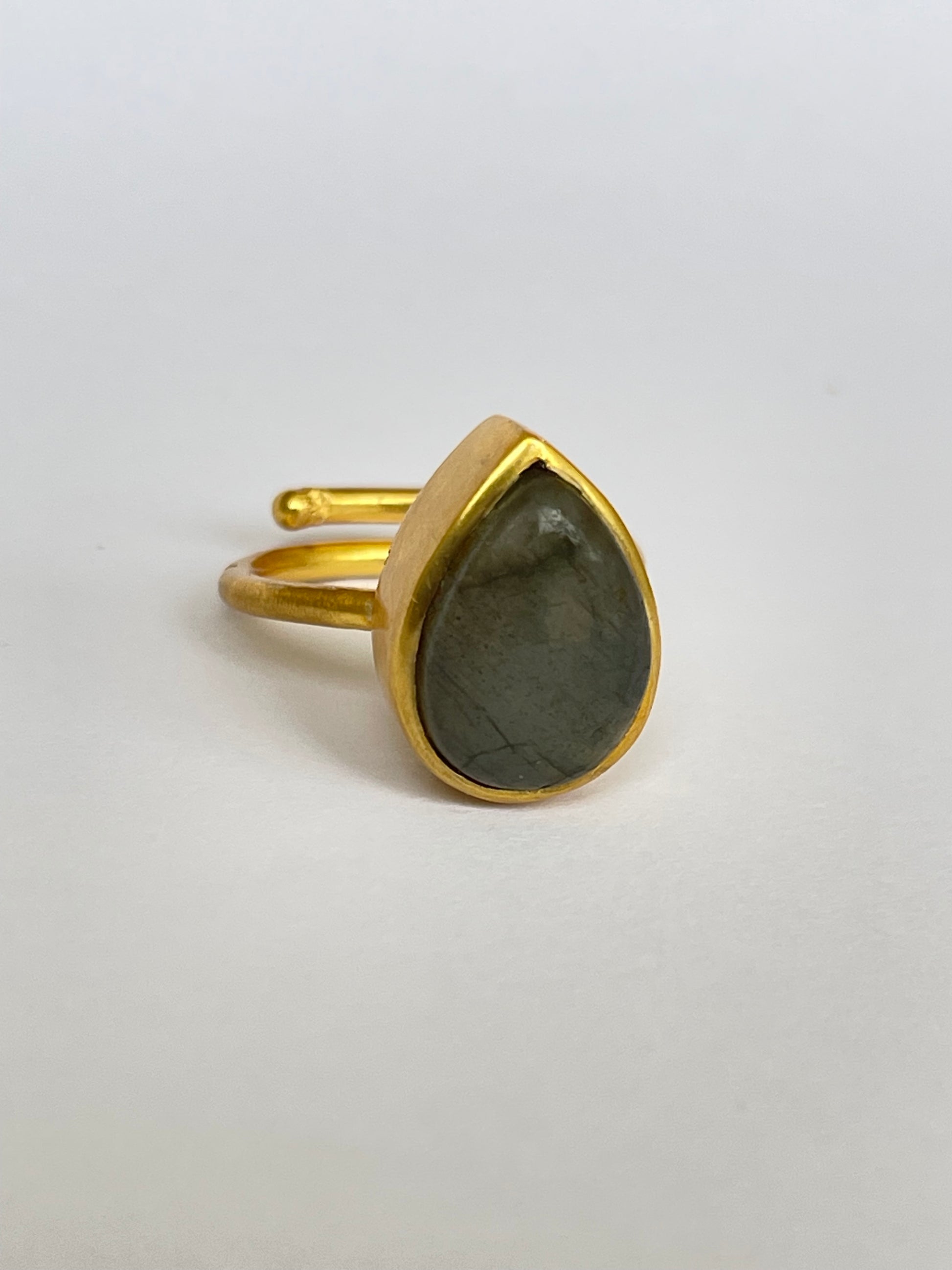 霧石 (Kiriishi) — Labradorite Teardrop Ring