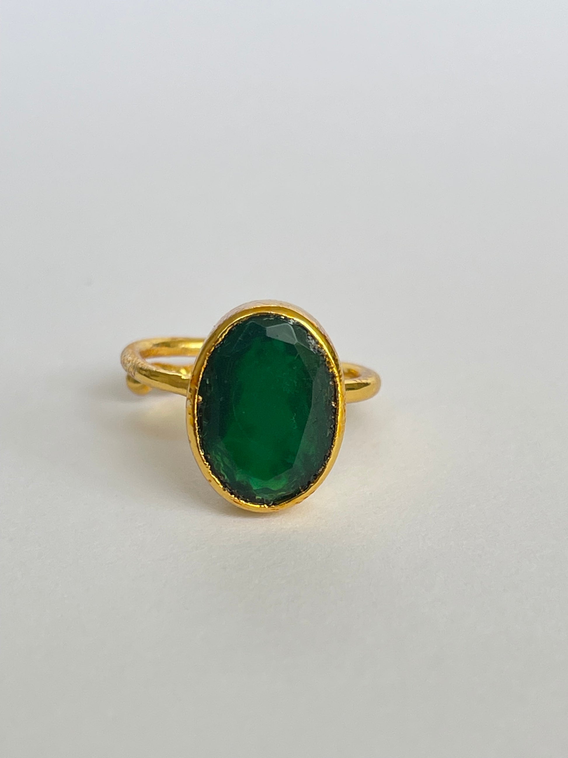緑光 (Ryokukō) — Emerald Quartz Oval Ring