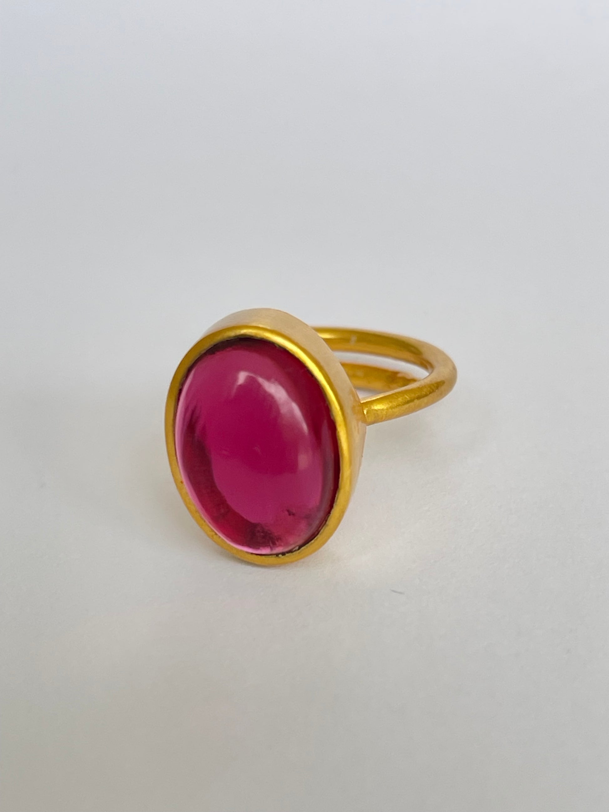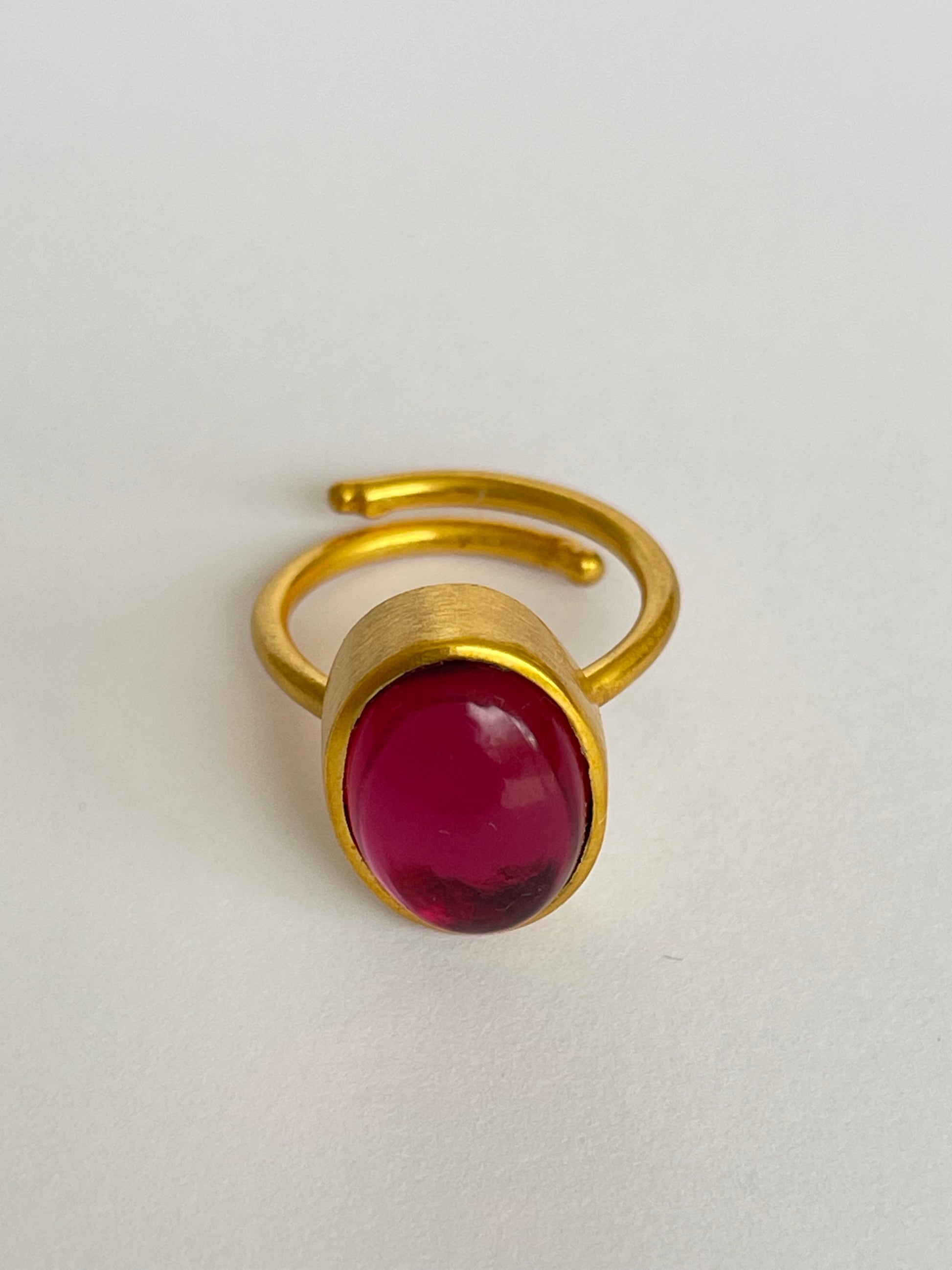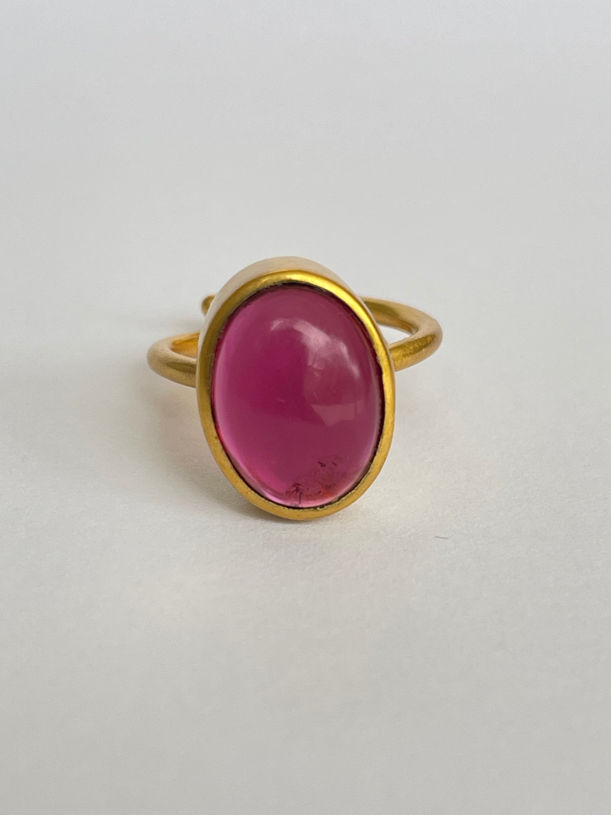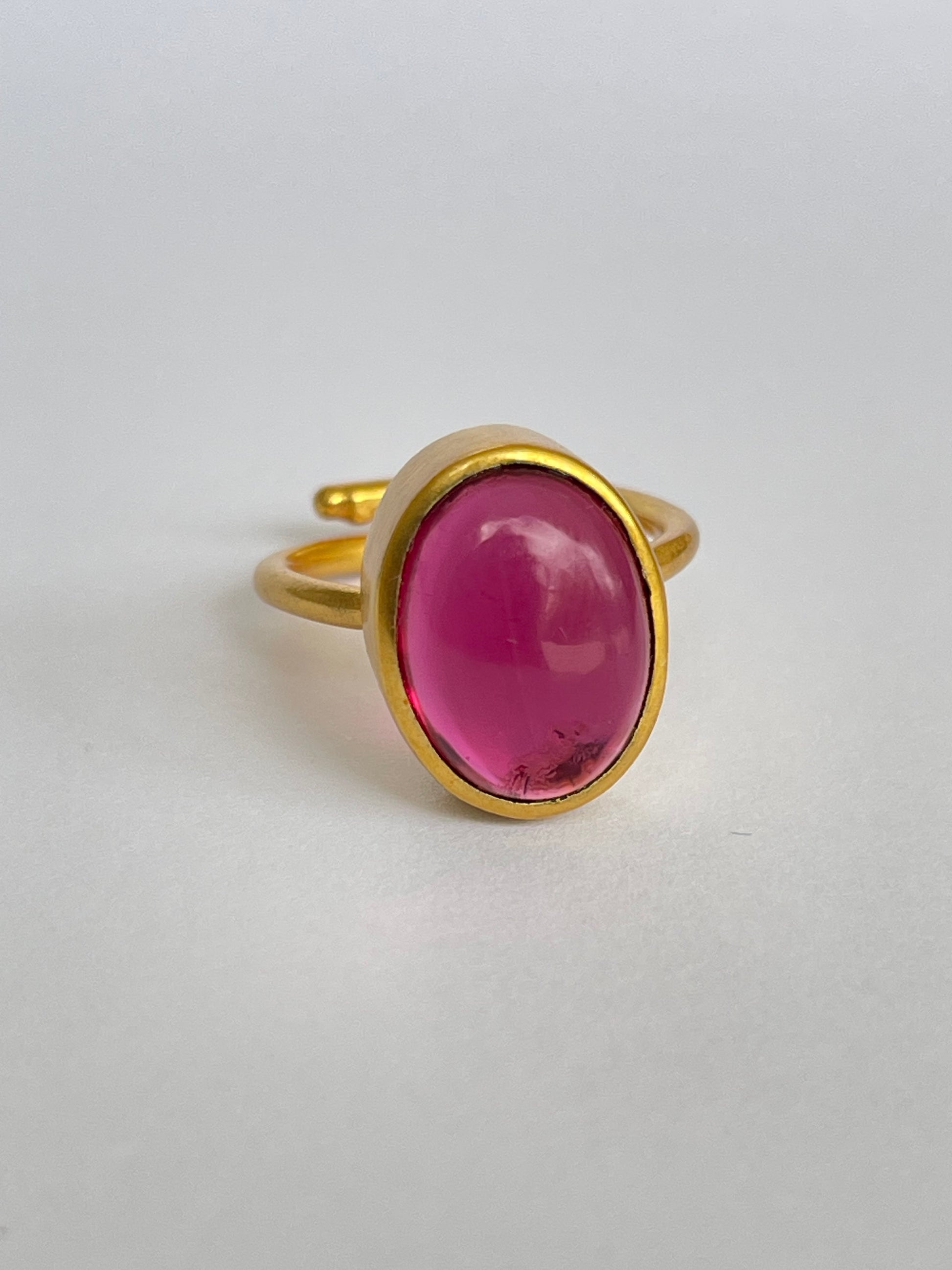 The Toukka Ring captures the blush of dawn — a luminous rose quartz cabochon set in radiant 18k gold-plated brass. Its soft pink hue glows with quiet warmth, embodying tenderness, beauty, and emotional renewal.